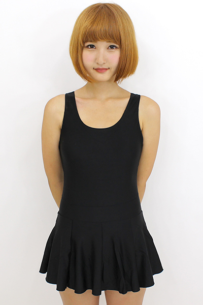 一見ワンピースのように見えるスカート付きの本格派スクール水着●セクシーなブラックカラー●ぽっちゃり体型でも安心して着られるXXLサイズ●前身頃全面に裏地・透け防止で安心●バスト部:しっかり固定できるパッド付。