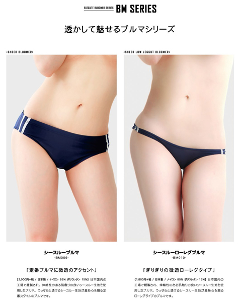 安心の日本国内の工場で縫製された微透感あるブルマでうっすらとお肌が見えるシースルー生地が羞恥心を煽るローレグタイプのブルマです。