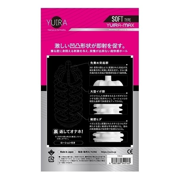 裏返してオナホ!あの人気商品とYUIRAのコラボ実現!簡易オナホがソフトバージョンで新登場!ハードと違い、やわらか素材でアナタを優しく包み込みます♪<選べる3タイプ><安心の日本製><ローション付き>激しい凹凸形状が即射を促す、摩る度に身悶える刺激を与え、我慢が出来ない超快感ホール、先責め突起群、360度取り囲むように配置された突起が先端を集中刺激。