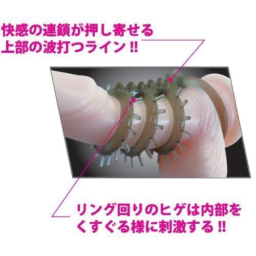 タイプBは上部3つのリングに付いたトゲが、くすぐるように刺激を与える特殊形状!さらに連結部分の波形状が相手の敏感なところを責め立てます。