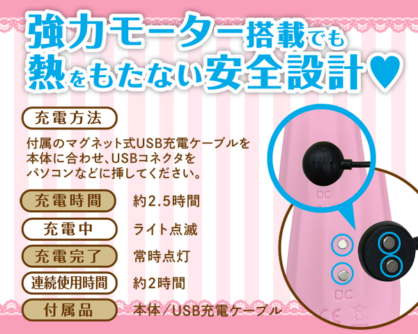 パッケージ:28.0×8.0×5.3cm 本体:全長21.0cm・ヘッド径5.0cm セット内容:本体、充電ケーブル USB充電式