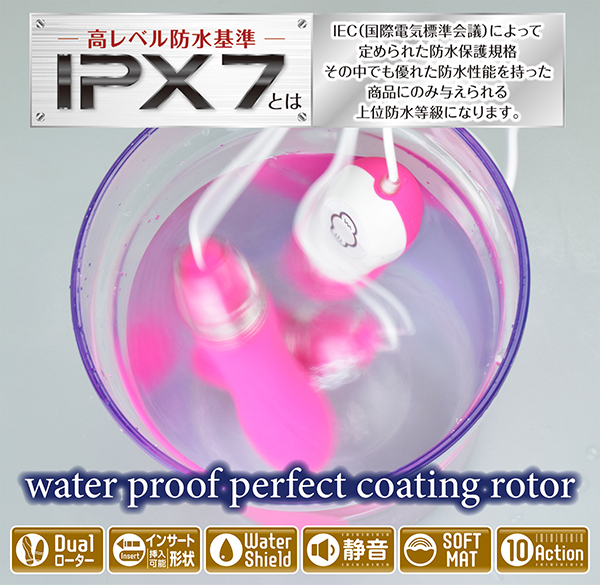 なんと30分間水没させても浸水しないという、国際基準IPX7をクリアした驚異の防水性能を誇るダブルローターです。