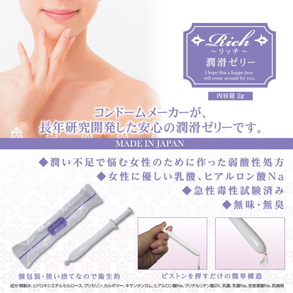 コンドームメーカーが長年研究開発した潤滑ゼリー!潤い不足で悩む女性のために作った弱酸性処方で女性に優しい乳酸、ヒアルロン酸Na。